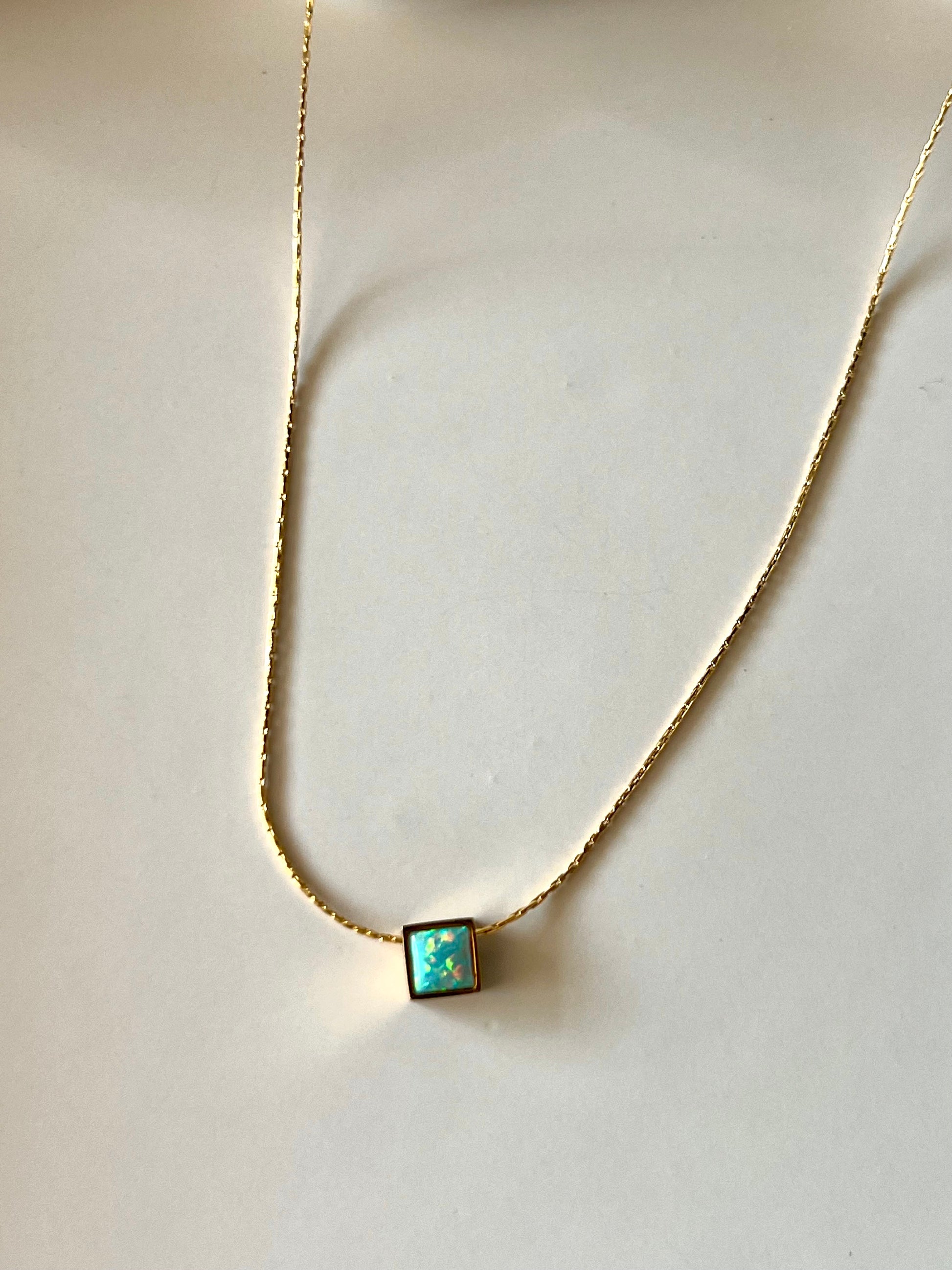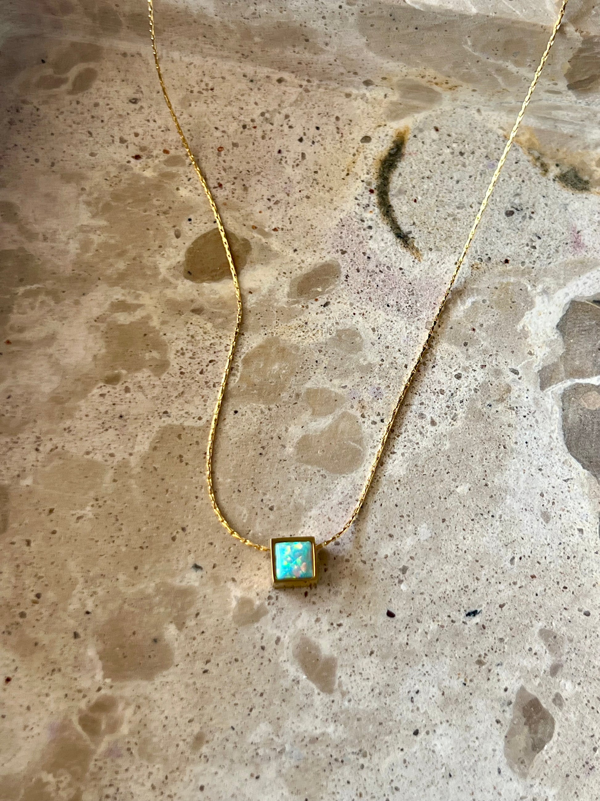 16.1-inch stainless steel necklace with real gold PVD plating, featuring a natural opal stone pendant.