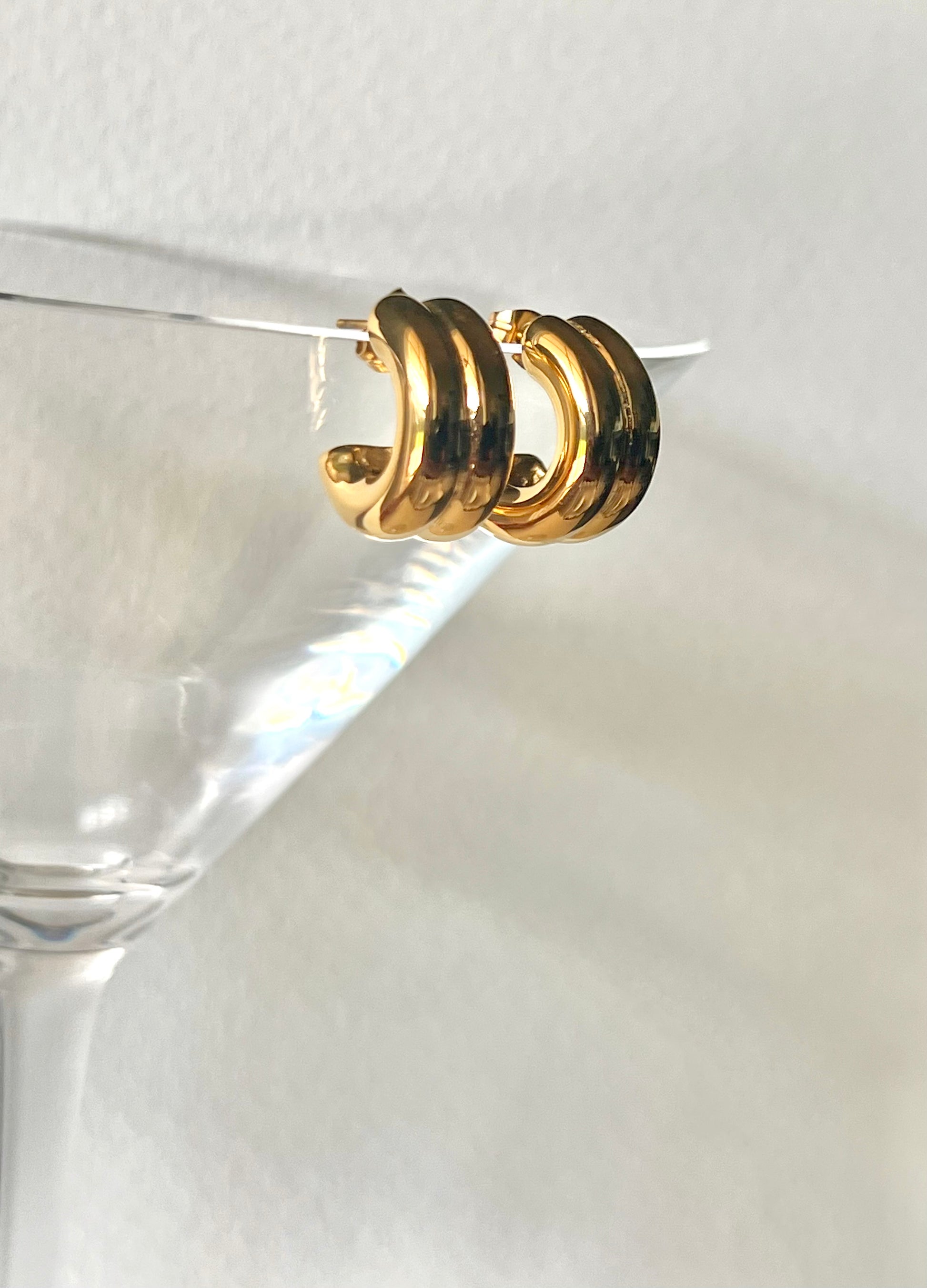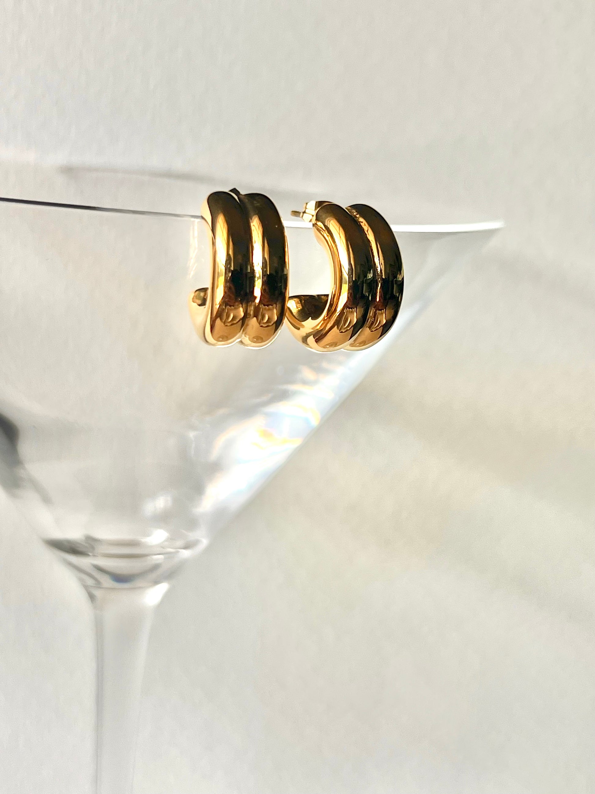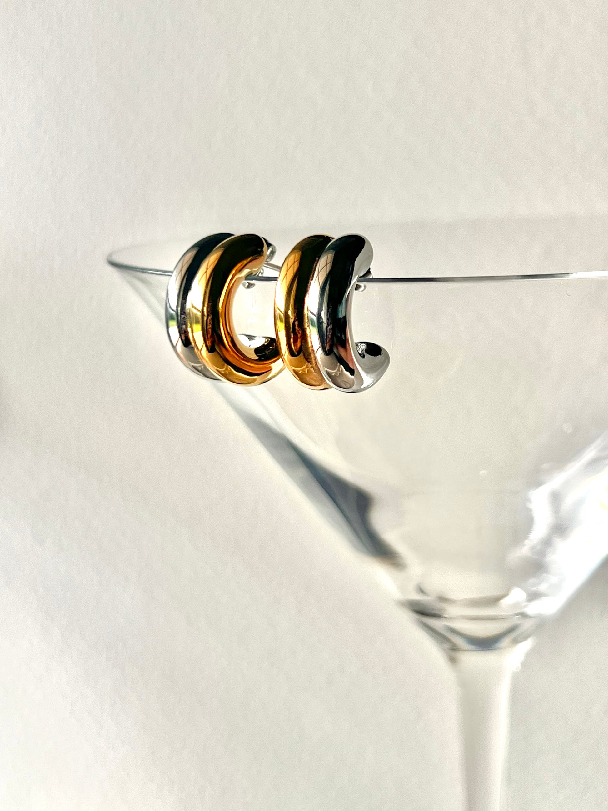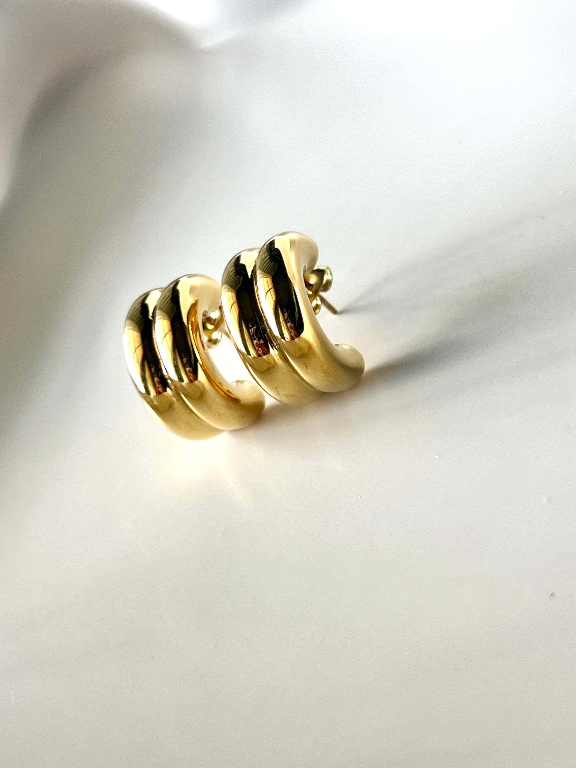 Gold and silver stainless steel stud earrings, tarnish-free, 0.71mm thick, 15mm wide, and 21mm high