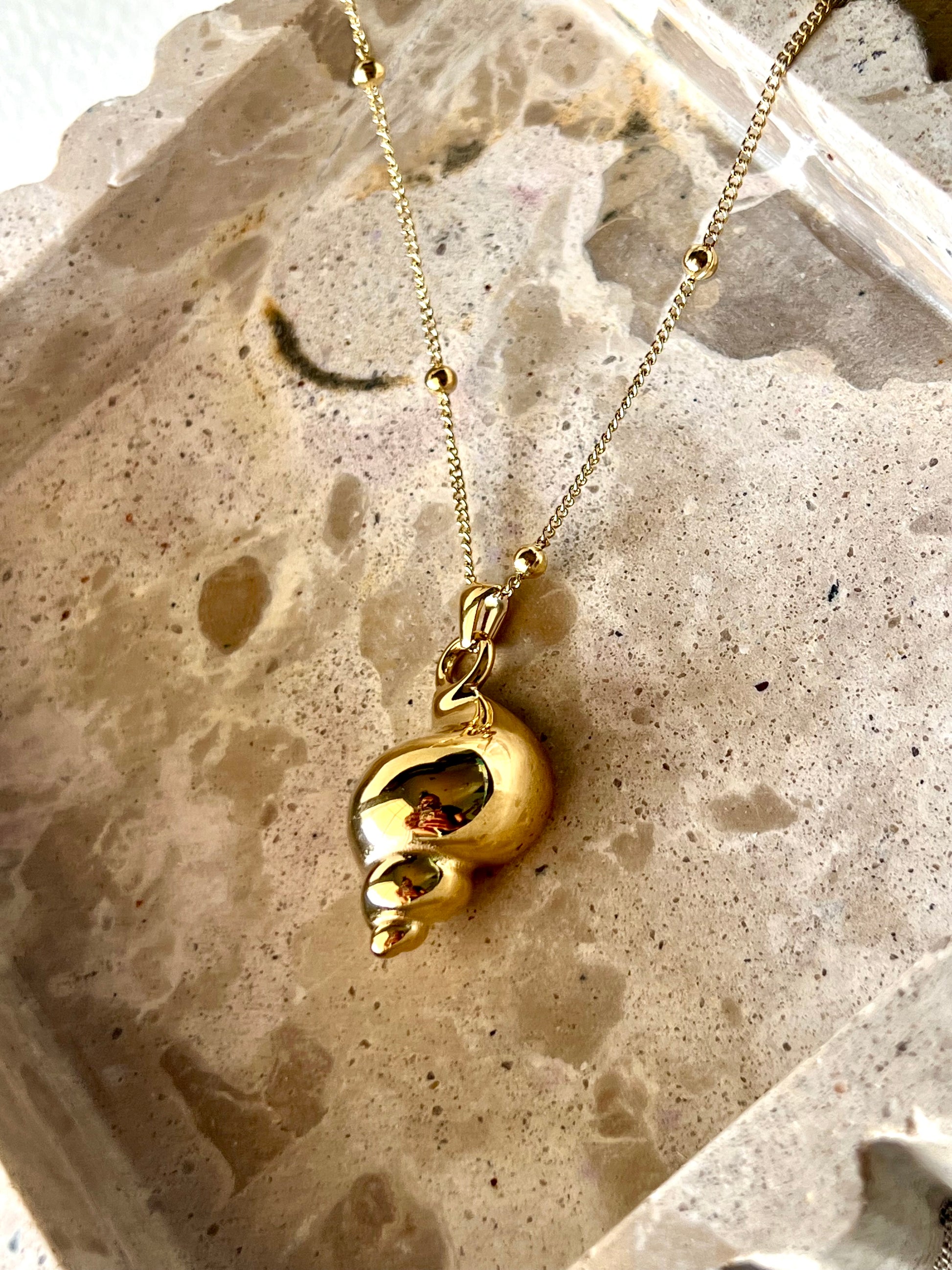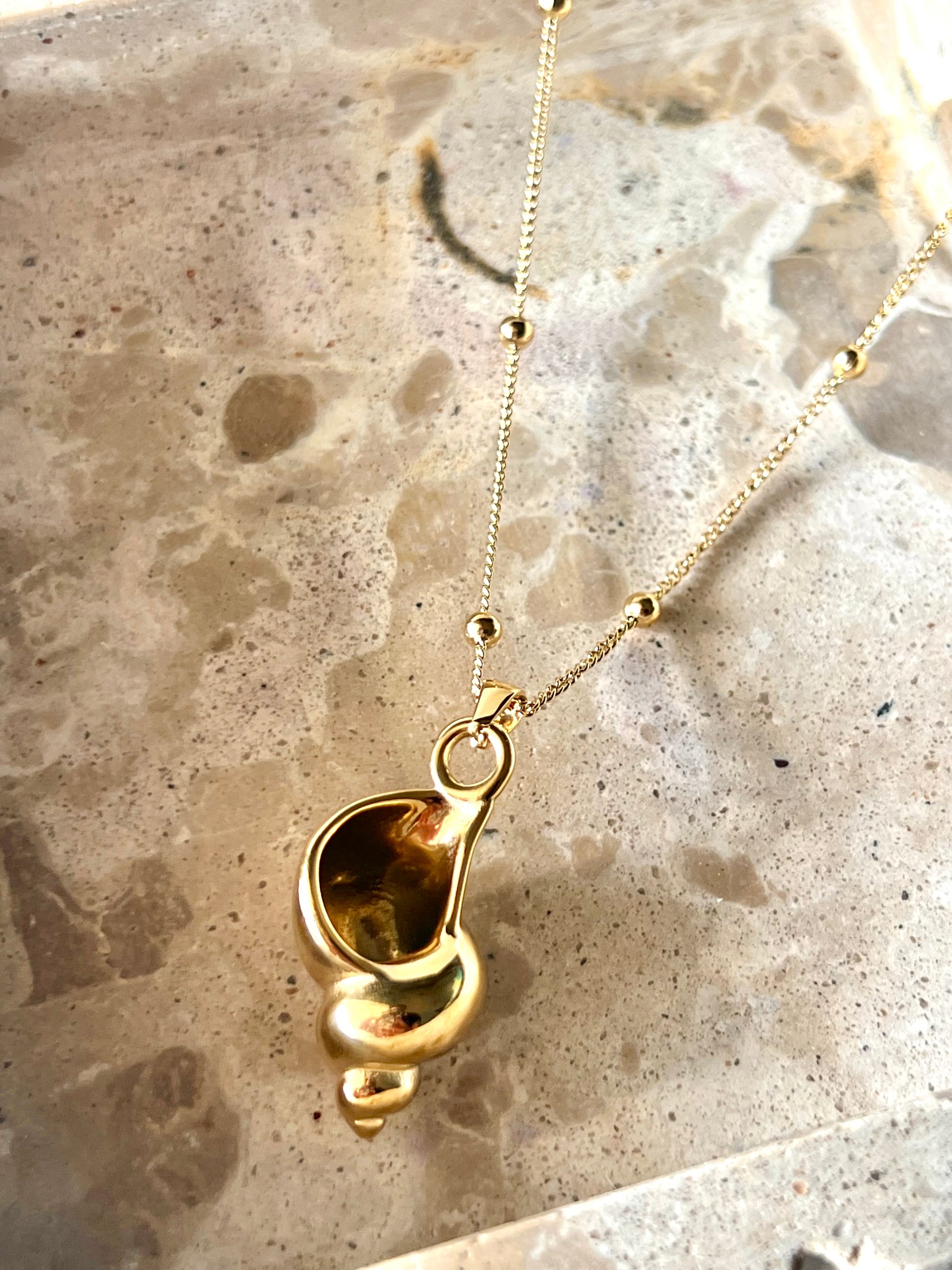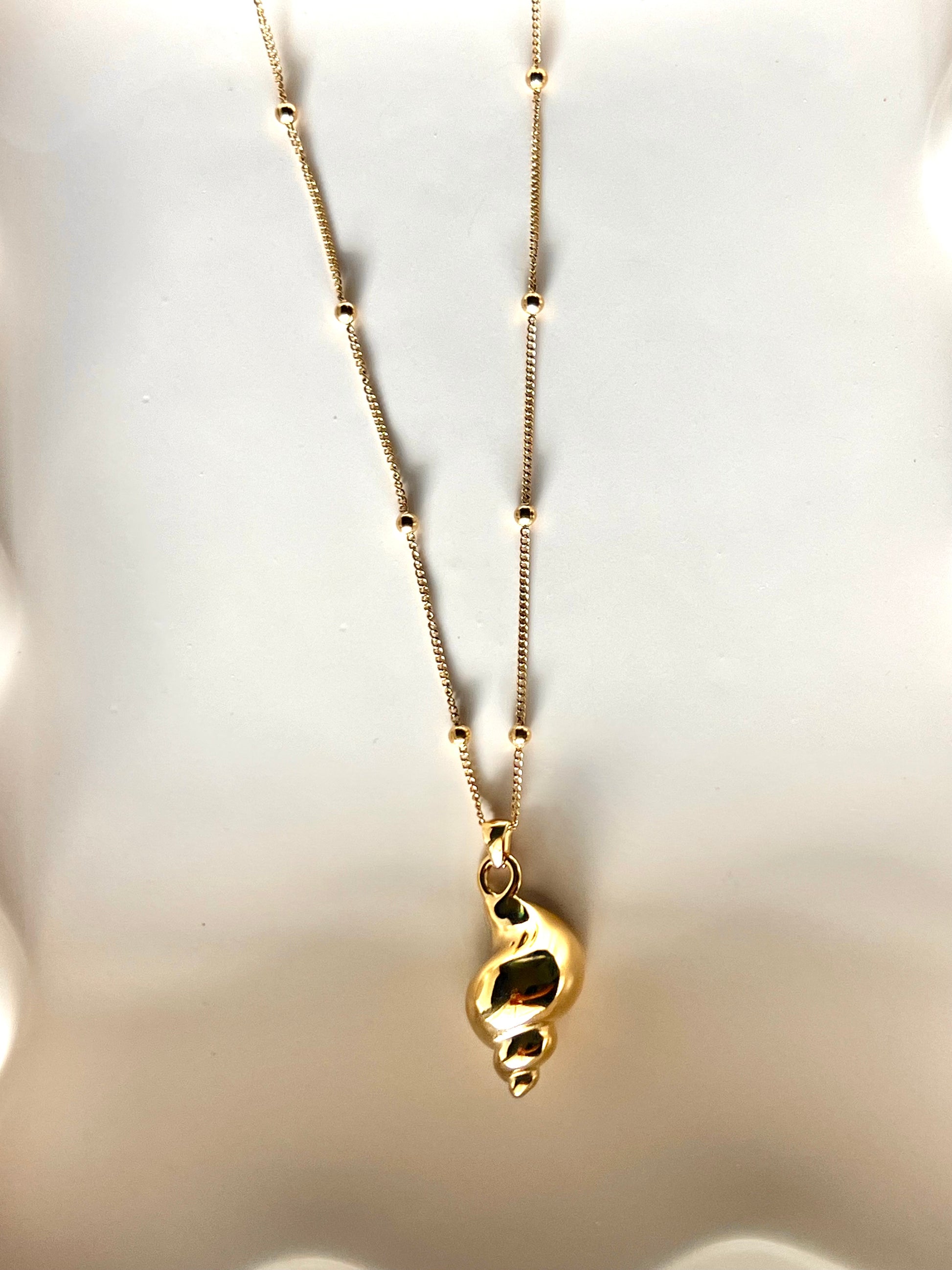 16.1-inch stainless steel necklace with real gold PVD plating, featuring a conch pendant.